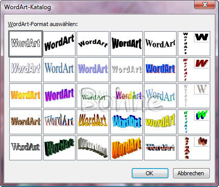 gehe wieder in der Menueleiste auf einfügen und dieses mal-> Bild -> WordArt
