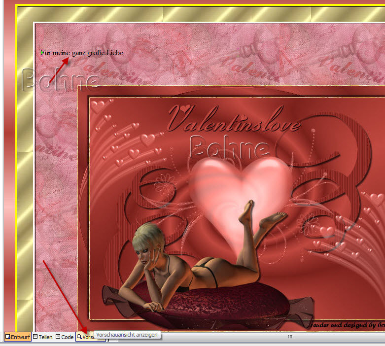 So wenn du mit deine Seite fertig ist dann klicke über sein Bild in den Tabellenraum
