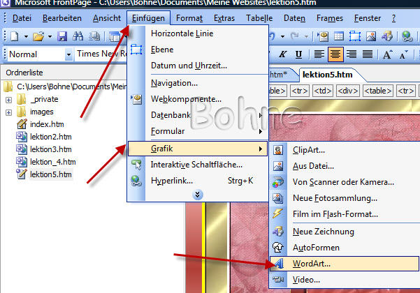 Als nächstes kann man eine WordArt (diese möglichkeit bietet dir nur FontPage wiel das ein Programm von Microsoft ist)