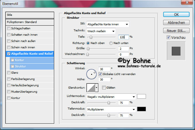 18) wiederhole Schritt 3-5 wieder rechem Mausklick Ebenenstil einfügen