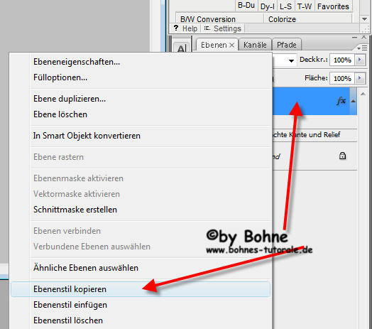 6) mit rechter Maustaste auf die Ebene klicken und Ebenenstil kopieren