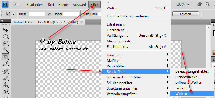 2) Gehe nun auf Filter-> Renderfilter-> Wolken.